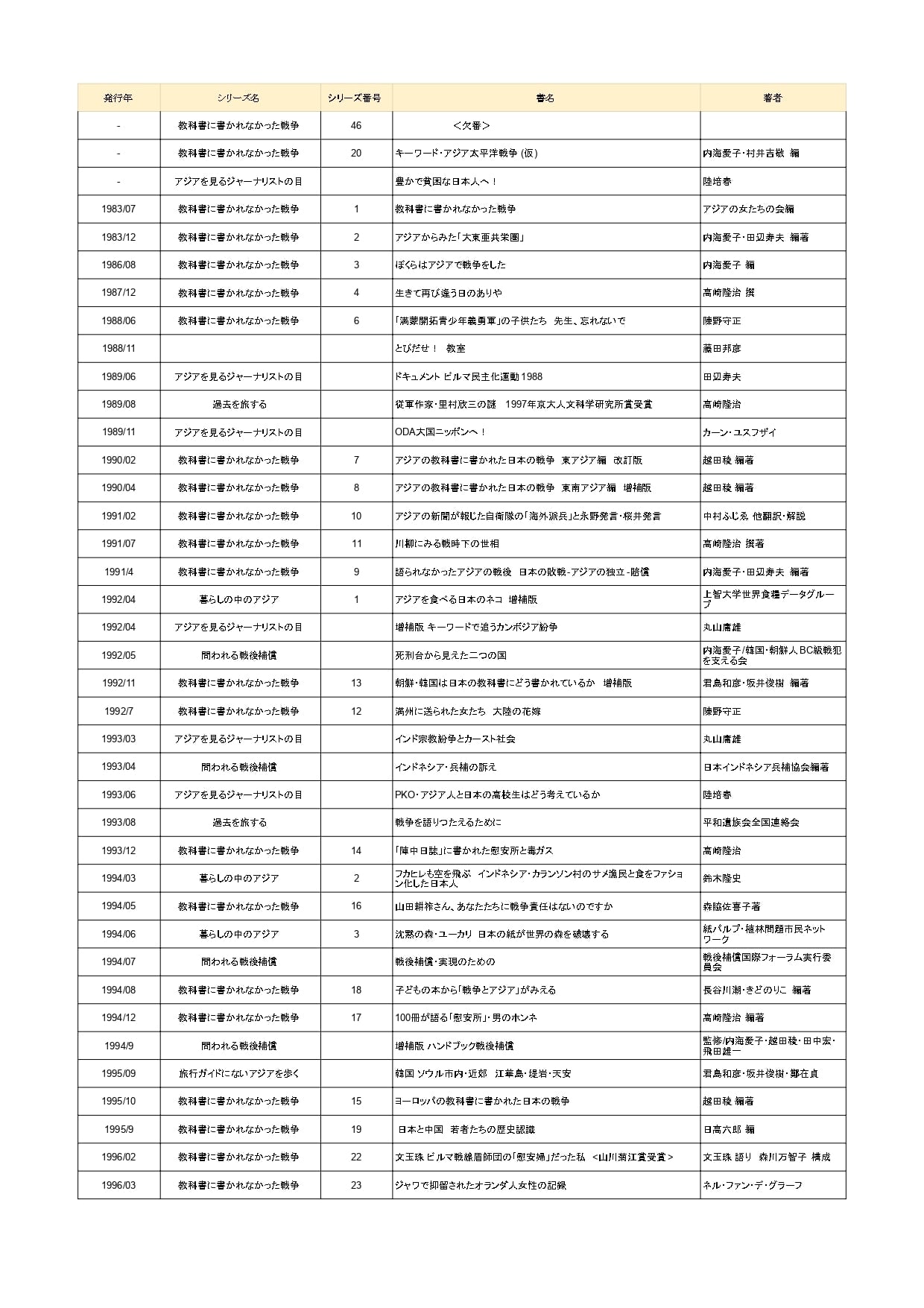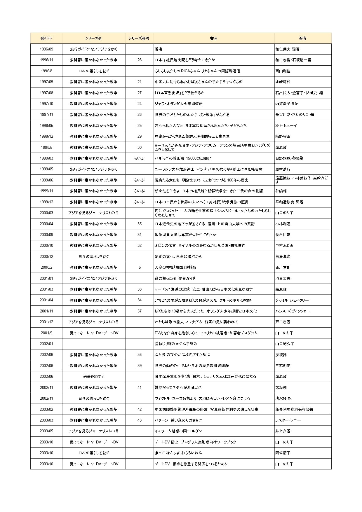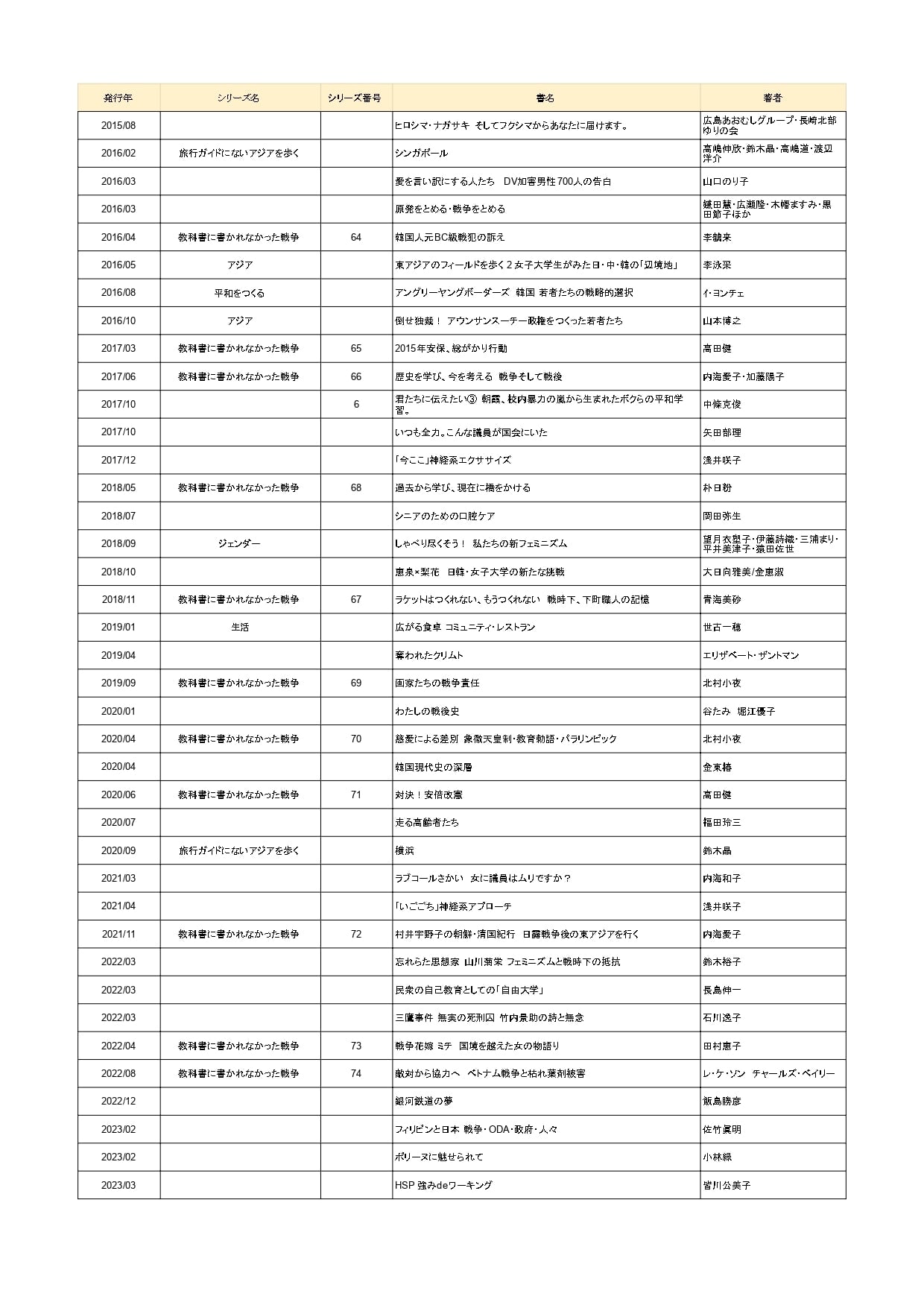 1983年に『教科書に書かれなかった戦争』シリーズの第1巻を刊行してから、梨の木舎では様々な書籍を作ってきました。※こちらのサイトで販売している近刊以外の書籍の在庫状況に関しては、【CONTACT】よりお問い合わせください。